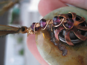 This piece was "modeled" by a young lady and her friend, who was holding it over her ' tummy for the photo. I made a whole new gang of friends while making jewelry outdoors yesterday. When I say gang I mean- 10+ kids! It was nice having an enthusiastic audience.