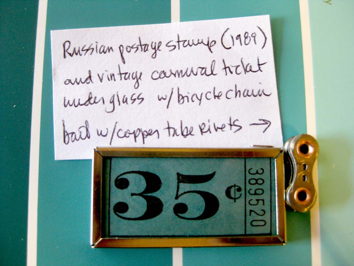 The focal pendant Pam made by riveting a piece of bicycle chain